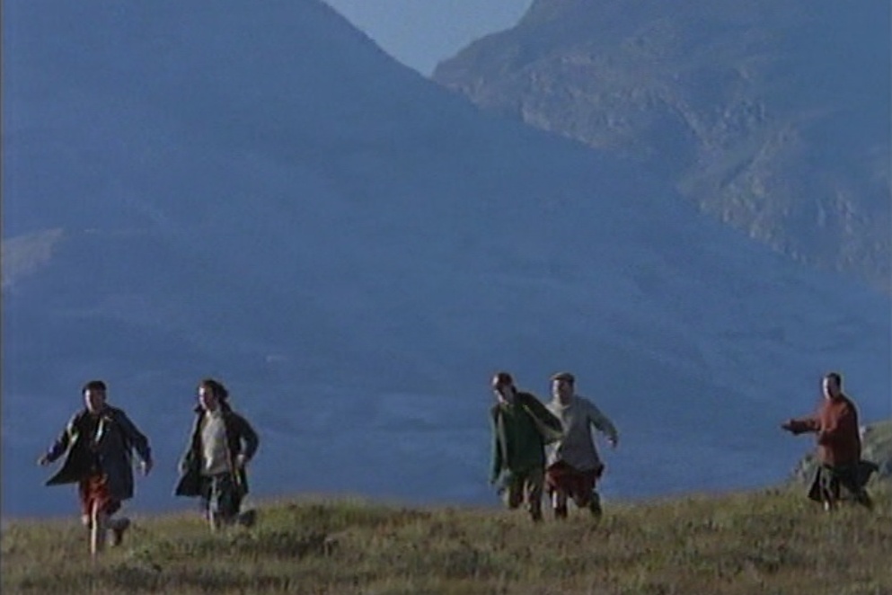 ヘイミッシュ、イゾベル、少佐、ロリー、ラクラン親子はTVジョンを救出するため、山を越える旅に出発(このような状況になるとキルト姿で出発するメンバー。スコットランド人の誇りなのか?あるいは戦闘にはキルトなのか?)。