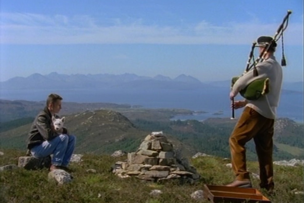 ヘイミッシュには、亡くなった少年宅から小さいウェスティが託されます。丘の上に作られたジョックの墓を訪れるヘイミッシュ、TVジョン、ジョック2。村の人々は立ち止まり、パブの客は静かに耳を傾けながらジョックを偲びます。
