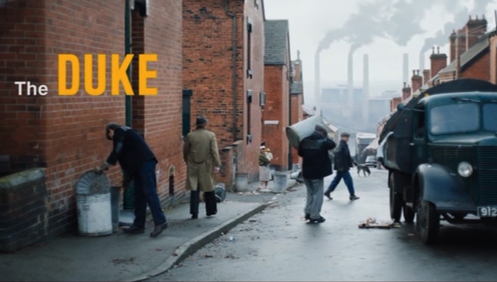 オープニングタイトルの背景は、1960年代のイギリス北部工業都市の煉瓦造りの路地裏。路上には古いトラックやゴミ箱が点在し、産業による煤けた雰囲気から当時の労働者階級の日常が感じられます。(画像は引用目的で使用しています)